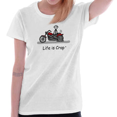 Finally we have some nice weather and you can enjoy riding your motorcycle, except when you remove the tarp cover, you see a flat tire staring back at you, mocking you that you don't have a spare and can't ride it today. This funny crewneck sweatshirt is perfect for any motorcycle enthusiast who loves to ride their bike and just can't. Our funny sweatshirts for commuters are perfect for most people who know how crappy life can be and actually enjoy it. That is what is so great about life no matter what kind of crap happens we can still try and enjoy it.